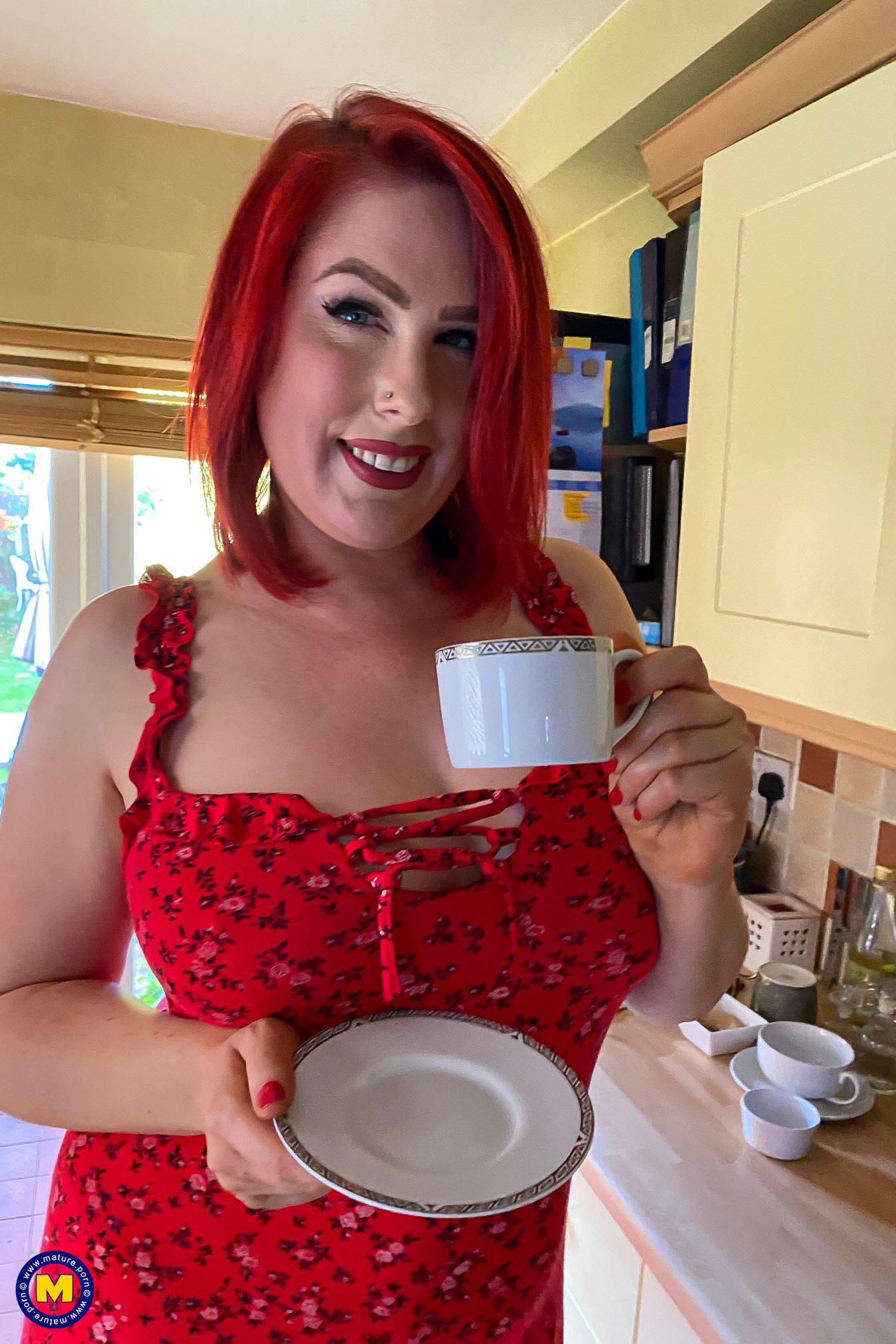 Solo redheaded mom masturbator showing how she cums