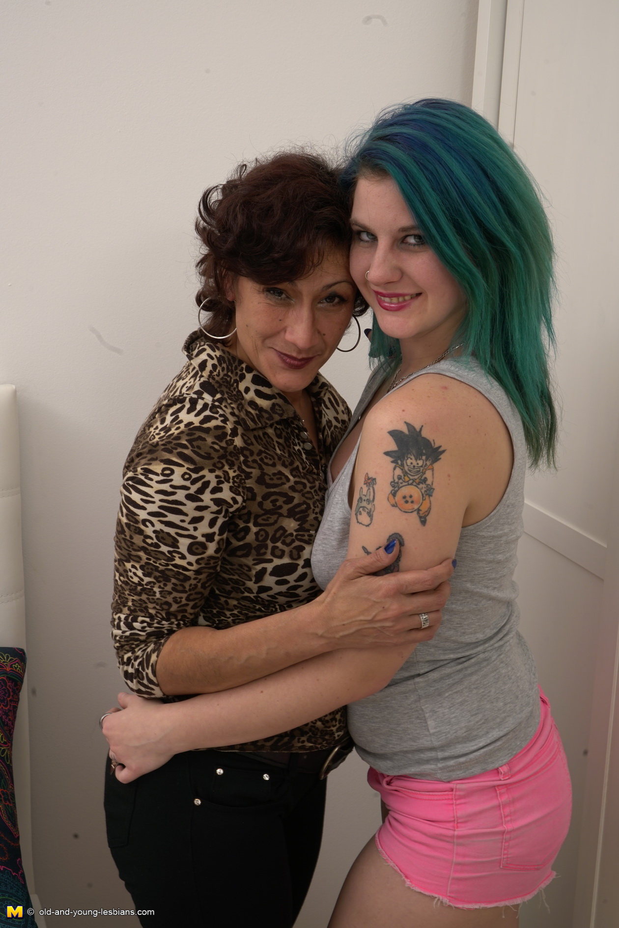 Alt girl with blue hair and tattoos makes love to mature