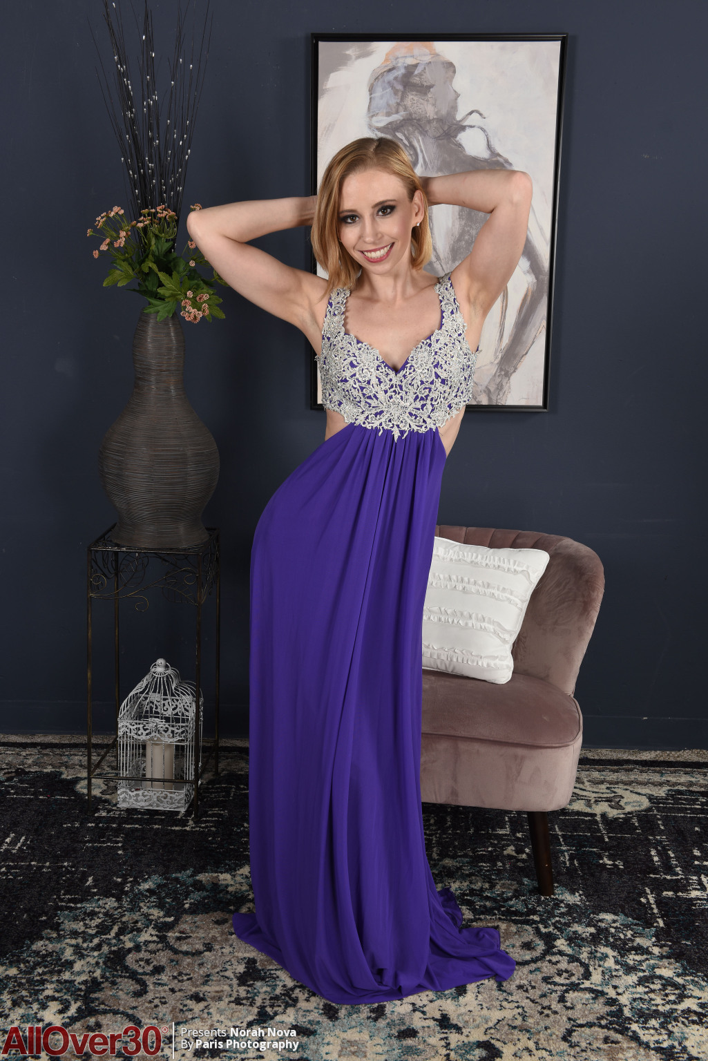 Blonde MILF in heels smiles while provocatively peeling off clothes