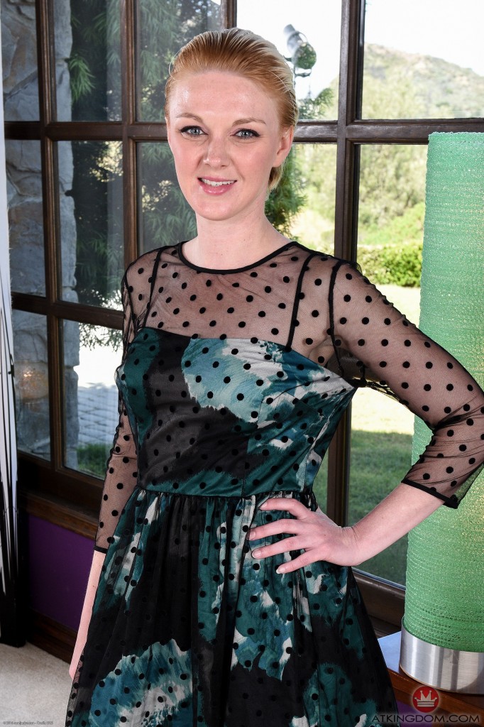 Erotic pictures of a housewife slowly undressing and caressing small tits