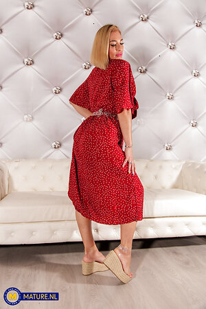 Mature blonde gilf strips dress and spreads juicy pussy