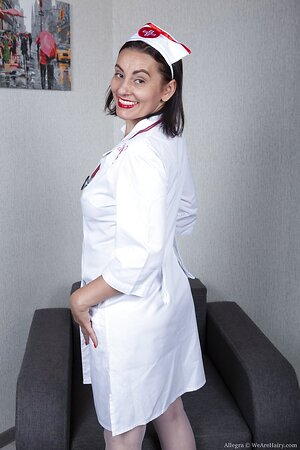 Sexy mature brunette in stockings spreads and teases her wet pussy