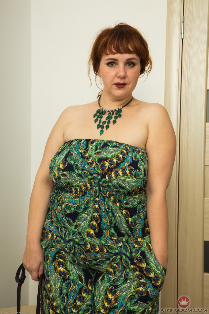 Fatty MILF with red hair got purple toy for overgrown cunt
