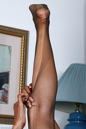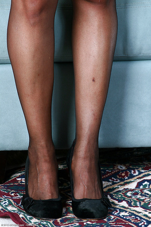 Naked MILF stays only in stockings and high heels her ass looks gorgeous