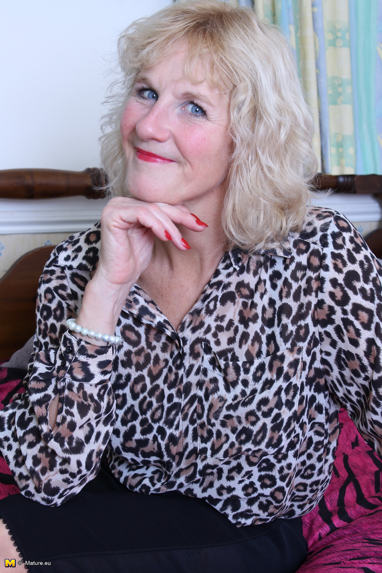 Blonde mom in lingerie teases her mature pussy