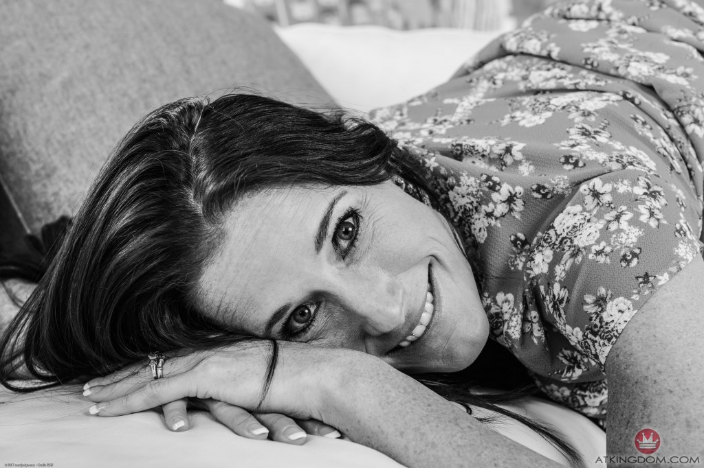 Hot mature blonde takes off red lingerie on the bed