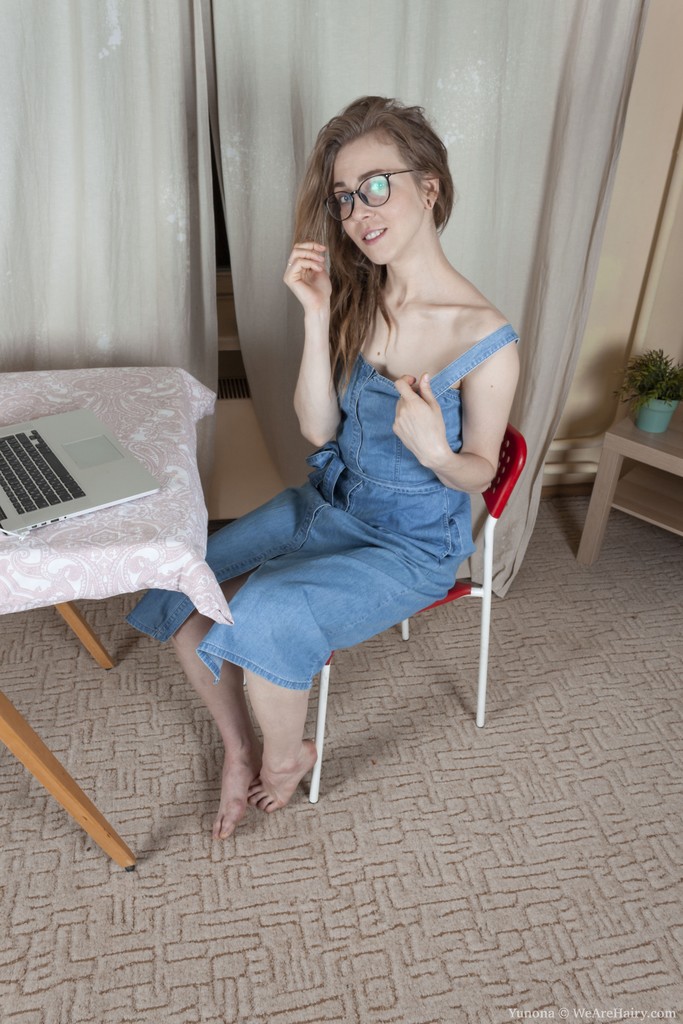 Small-tittied MILF with glasses strips in hairy moms pics