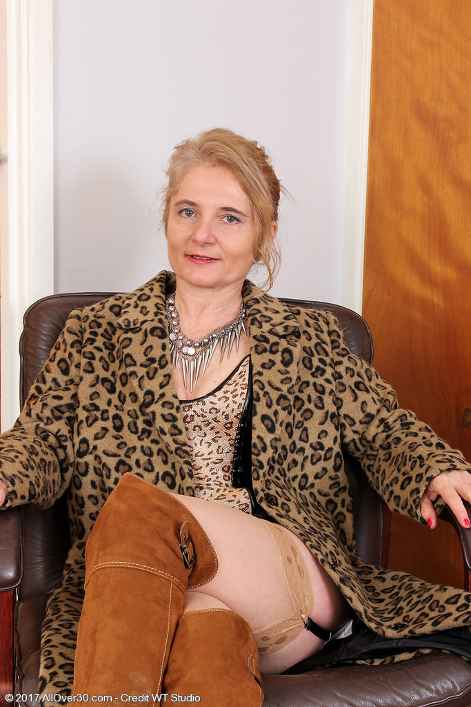 Blonde lade in sexy stockings poses in the mature saggy pics