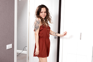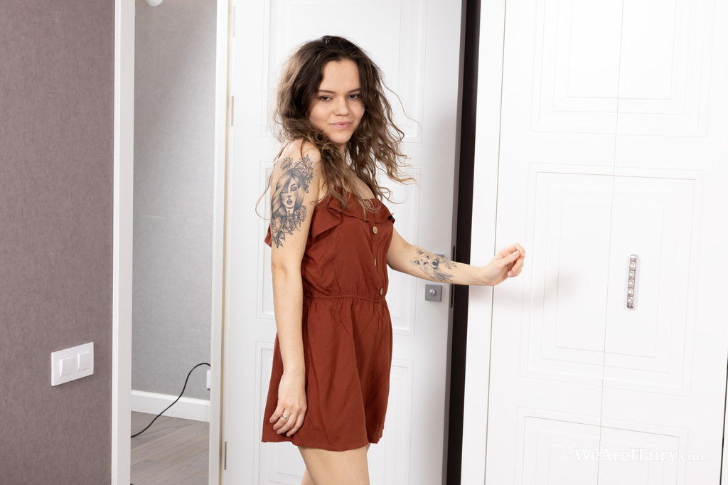 Erotic pictures of the hot redhead MILF with the natural hairy pussy